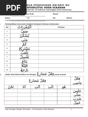Kisi kisi soal bahasa arab mi kelas 1 2 3 4 5 6.